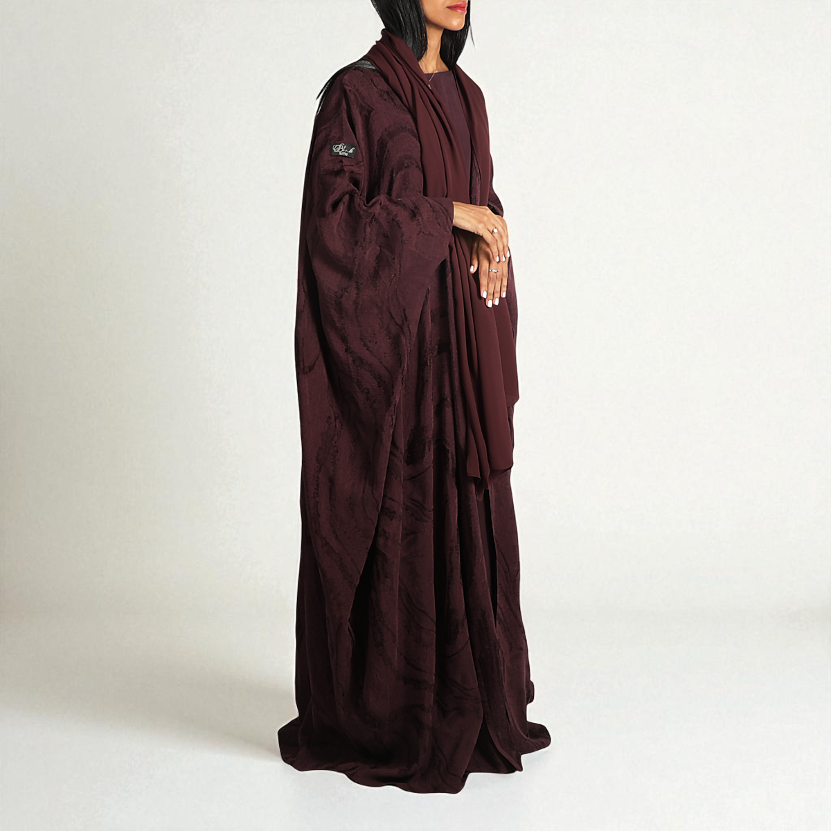 ربع بشت مصمم من مزيج الجاكار الفخم مع الحرير المغسول الناعم؛ لمسة كلاسيكية راقية بلمعان هادئ وانسيابية عملية، تمنح إطلالتك حضورًا استثنائيًا.